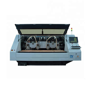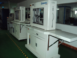 Driller w/ 8 working stations (4 front and 4 rear), each station is equipped with a WW 1331-41 spindle (125.000 Rpm), max. panel size: 570 x 720 mm, CNC 45 control, suitable for drilling diameters: 0.10 – 6.35 mm, X & Y linear drives, drilling accuracy approx.: 0.018 mm, positioning speed: 25 m/min. Overall machine dimensions: 4020 x 2320 x 2200 mm. Electrical connections: 380 V – 50 Hz – 3 Phase.